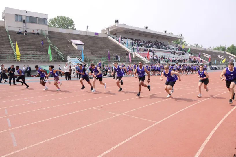 东大操场接续举行。赛前,15位教职工代表携熟女肛交旗入场,随后,100位苏世民学者以每届10人一组完成百圈接力,以奔跑庆祝建校115周年,以“无体育,不清华”的精神凝聚全球校友力量,为中外青年交流互鉴注入蓬勃活力。