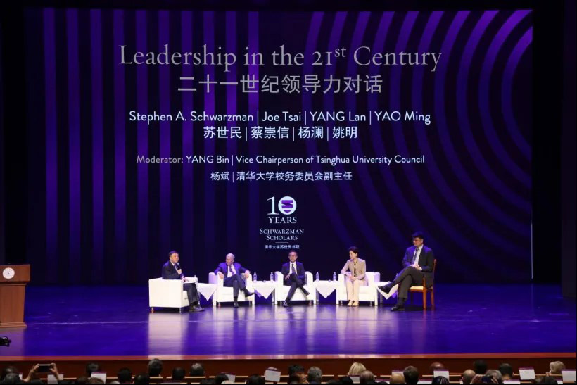校务委员会副主任杨斌教授主持,对话苏世民、蔡崇信、杨澜、姚明四位不同领域的杰出代表,共商二十一世纪核心挑战下的领导力。